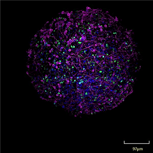 We have also developed a chemically defined glial-enriched medium (GEM) that increases the population and functionality of astrocytes and oligodendrocytes within bMPS, improving physiological relevance. These models demonstrate robust neuronal activity, neurite outgrowth, and cell migration, making them valuable for studying neurological diseases and drug discovery.